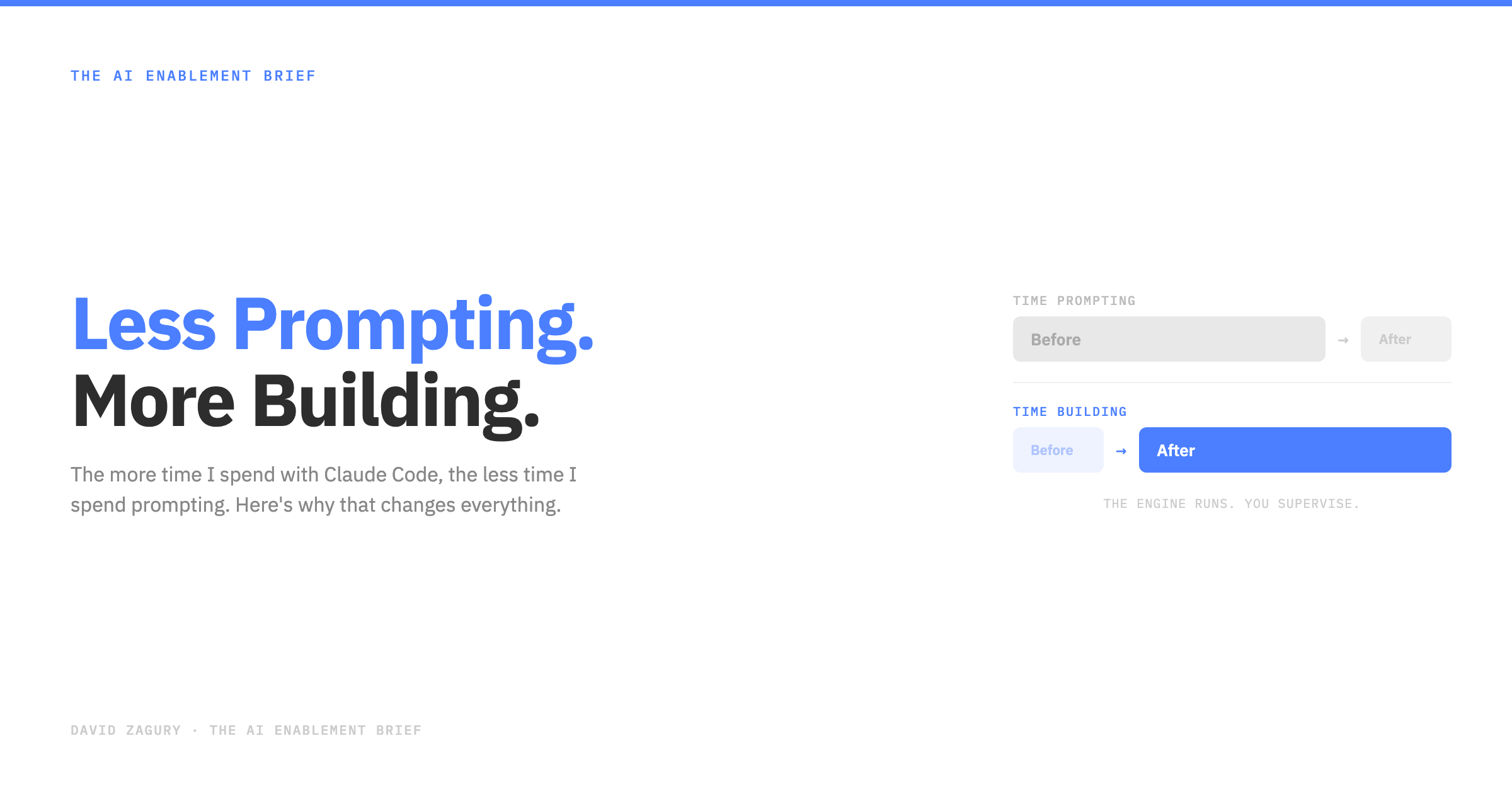 That investment compounds. Every hour spent building the engine is reclaimed tenfold in reduced prompting overhead.