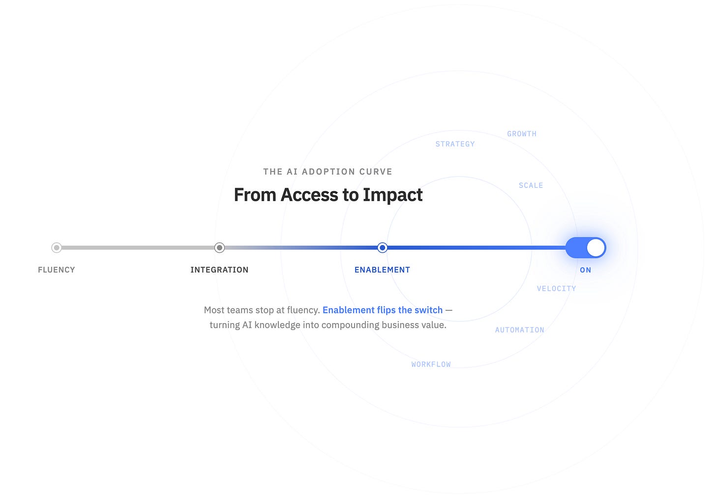 This is the level that moves beyond the tool and into the human mind. I like to think of it as a toggle. It’s a mental switch that happens when you finally see the full, compounding value that AI can drive across an entire business.